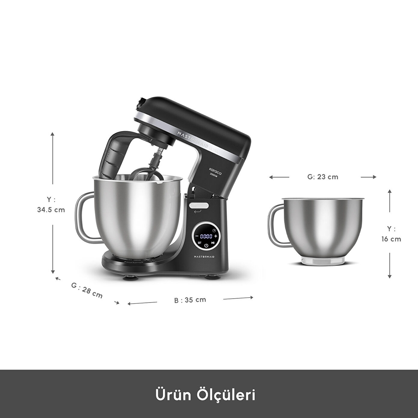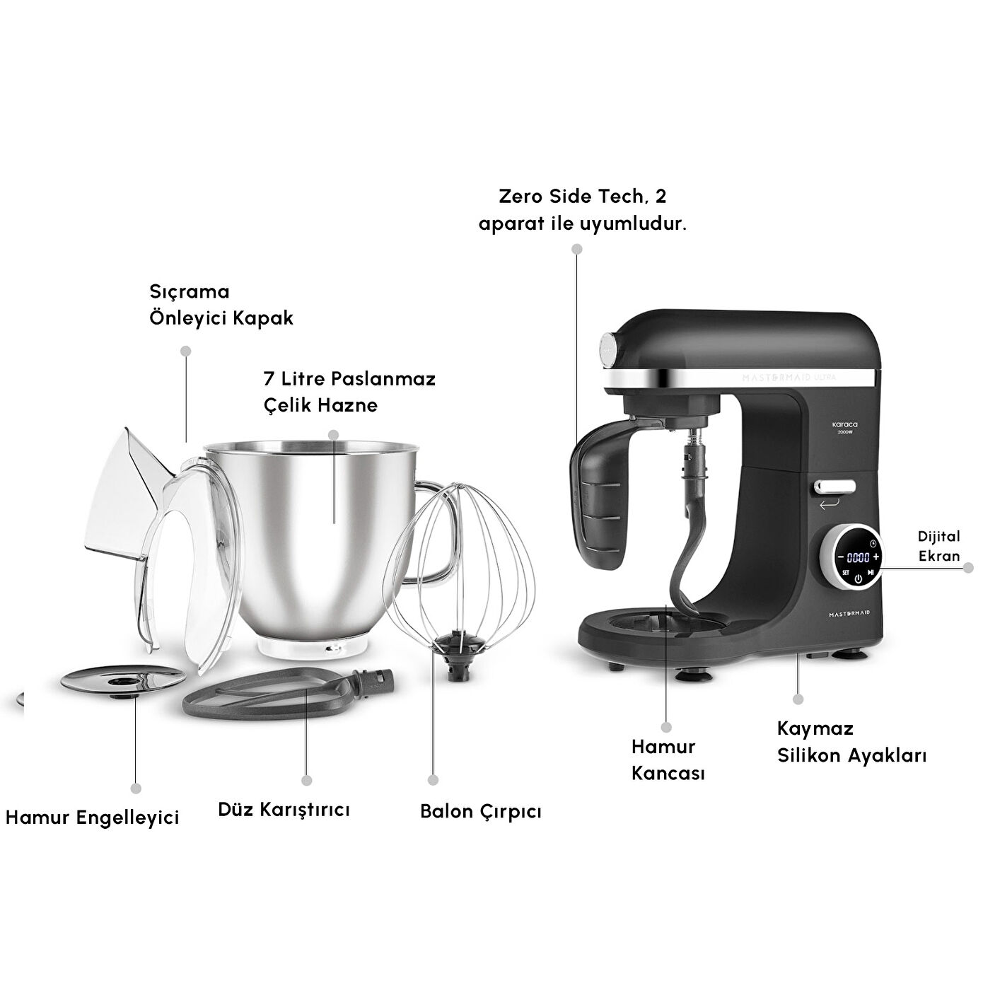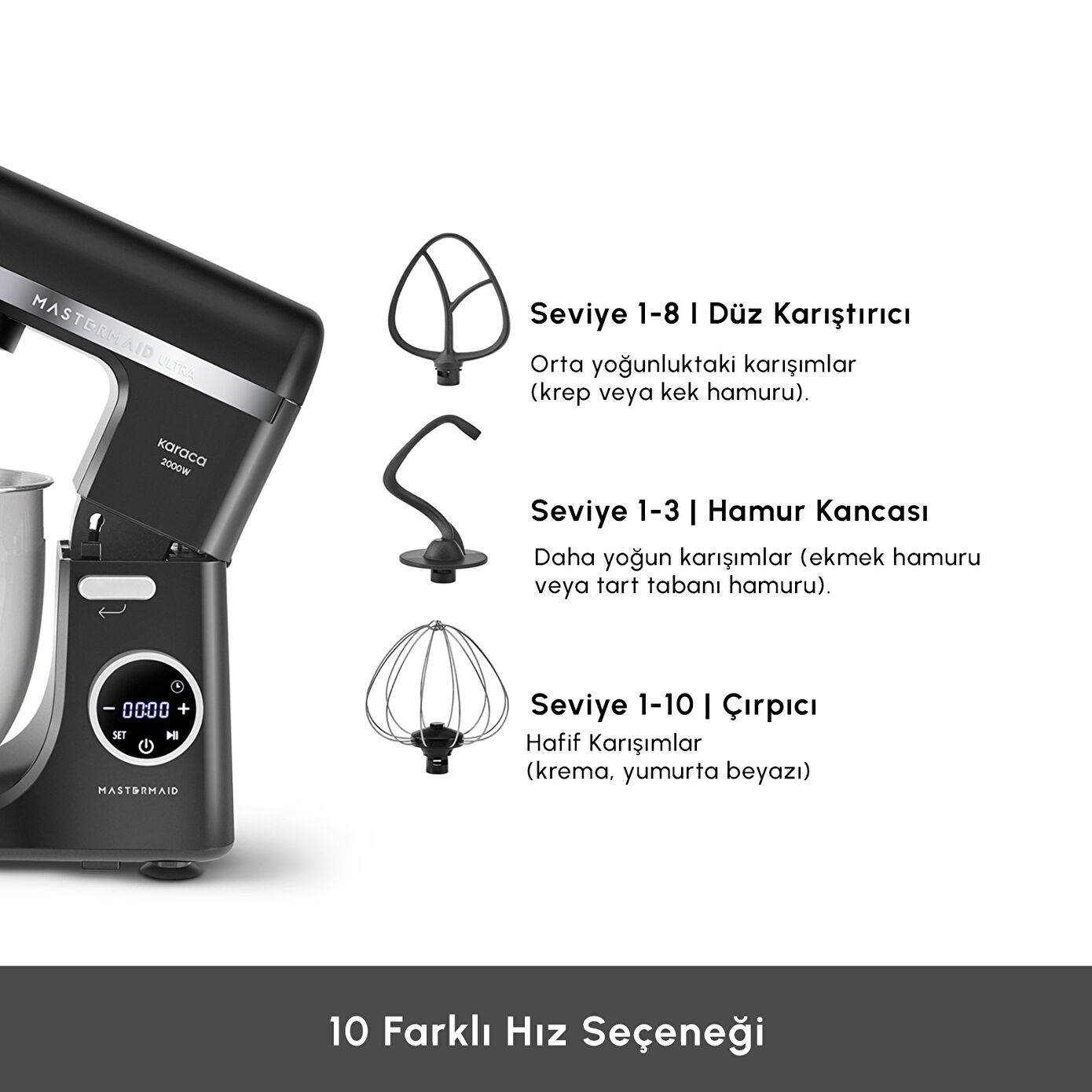 Karaca Mastermaid Chef Ultra D2000W Dijital Ekranlı Hamur Yoğurma Makinesi Matte Black 7L
