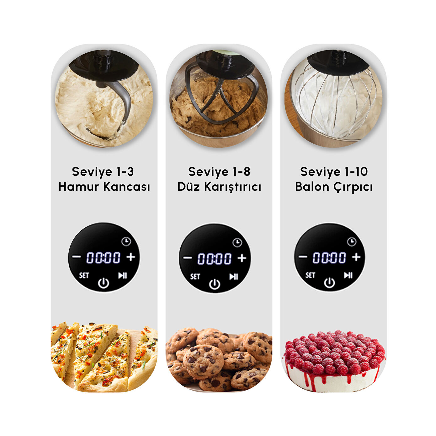 - 10 farklı hız kademesi ve dijital ekran sayesinde tüm tariflerde zamanlama ve hız ayarını kolayca yapabilir, her seferinde mükemmel sonuçlar elde edebilirsiniz.