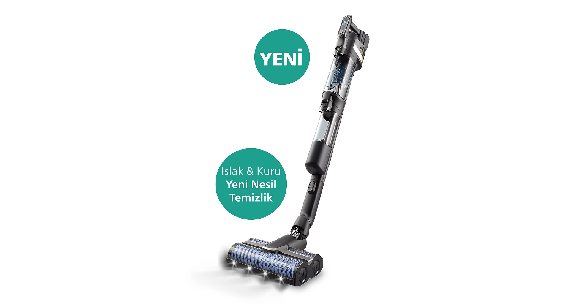 Hem ıslak hem kuru süpürgede bulunan LED ışıklar sayesinde zeminlerinizde bulunan görünmeyen toz ve kirleri ortaya çıkarır ve derinlemesine temizlik sağlar.