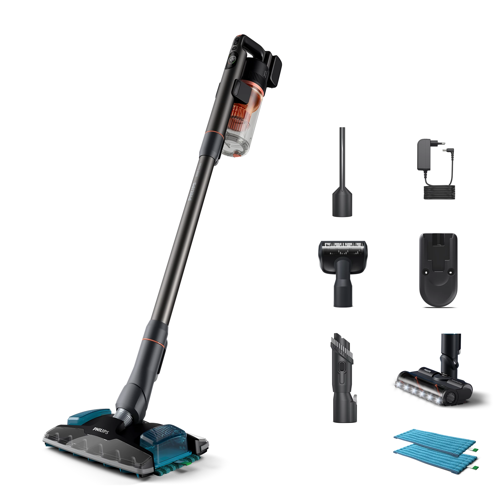 Özel olarak tasarlanmı? Aqua Plus ba?lığıyla, tek seferde zemini süpürmenizi ve silmenizi sağlar. Evinizin sert zeminlerindeki tozu, kiri ve zorlu lekeleri %99'a varan oranda temizler[4]. Dilerseniz deterjan veya Philips Zemin Temizleyici (XV1792) kullanabilirsiniz.
